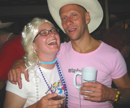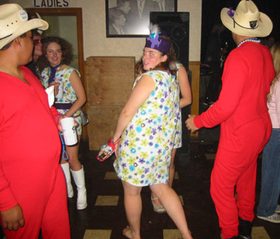 After hauling ourselves out of the water and lumbered back onto the Maggot Bus for the long, slow ride home, we dressed up in our finest evening wear and went out on the town...